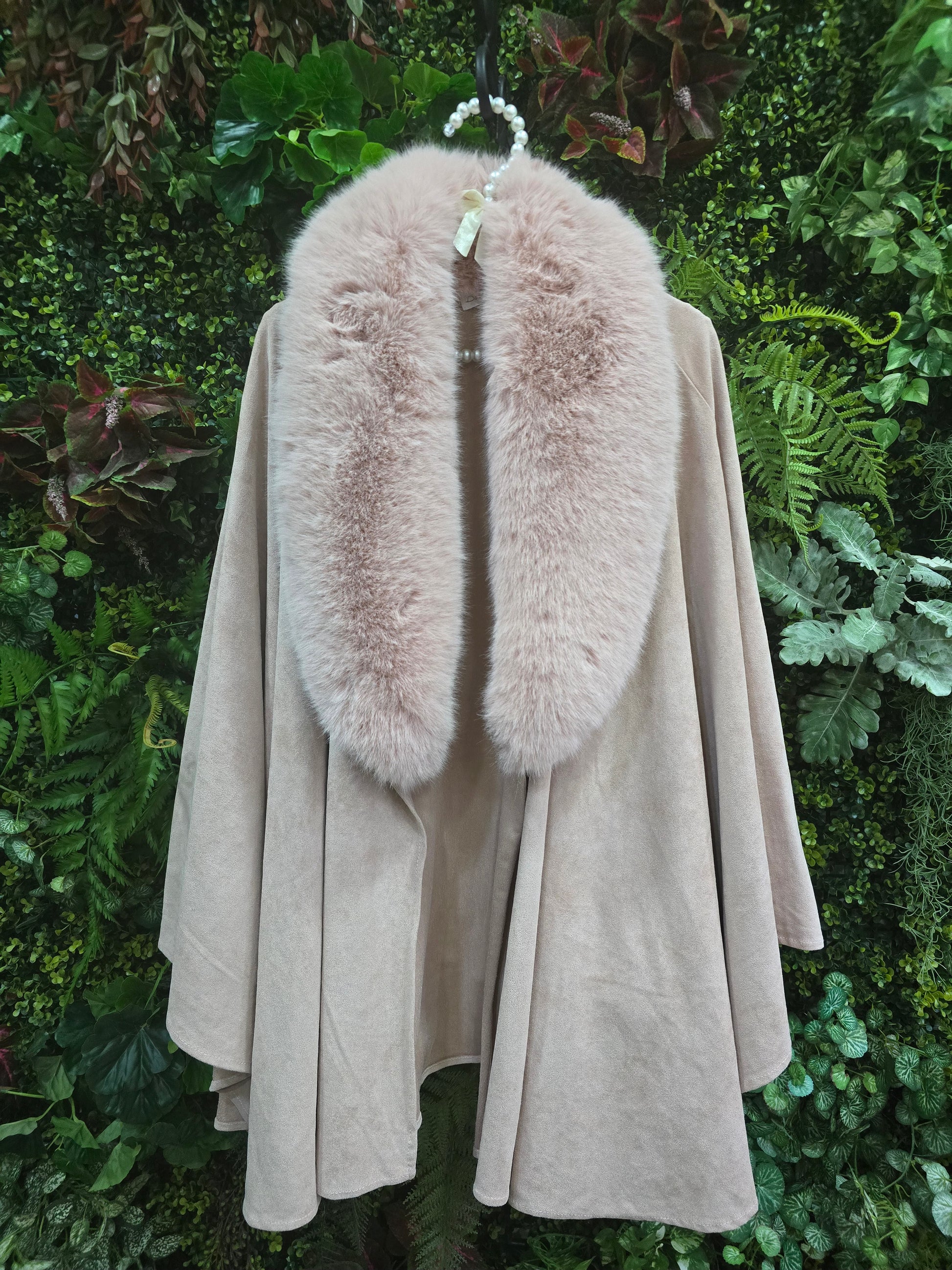 Capa rosa com gola em pêlo