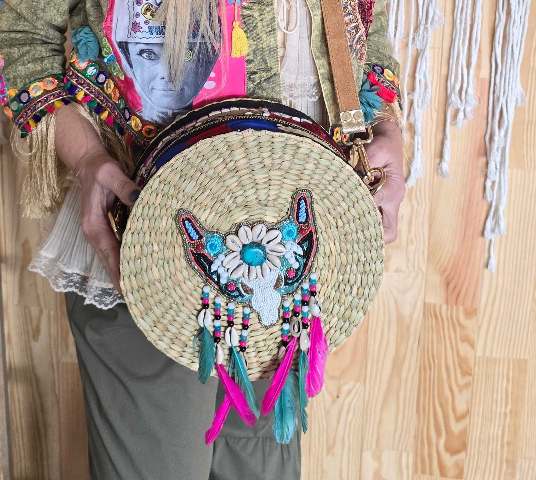 Mala cestinho redonda boho